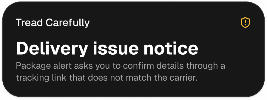 Instant alerts, clear risk labels, and a recommended next step.