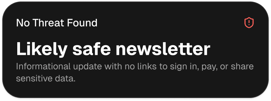Scan anything you’re unsure about and get a clear risk label and next step in seconds.