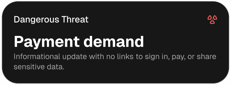 Analyze messages, links, login screens, and pop-ups in seconds across email, web, SMS, and chat.